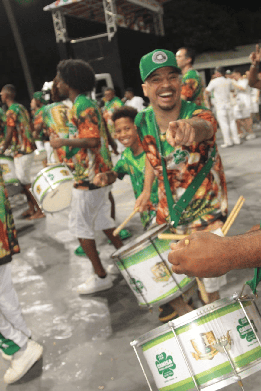 A Bateria de Bamba, com seu ritmo sempre marcante, veio sob o comando do Mestre Matheus Machado e apresentou em sua corte a Rainha Gabriela Ribeiro, já totalmente recuperada após afastamento para cirurgia. O intérprete Alessandro Tigana conduziu o samba-enredo “Encruzas, Nenê de corpo e alma no coração de São Paulo” com firmeza e identidade.