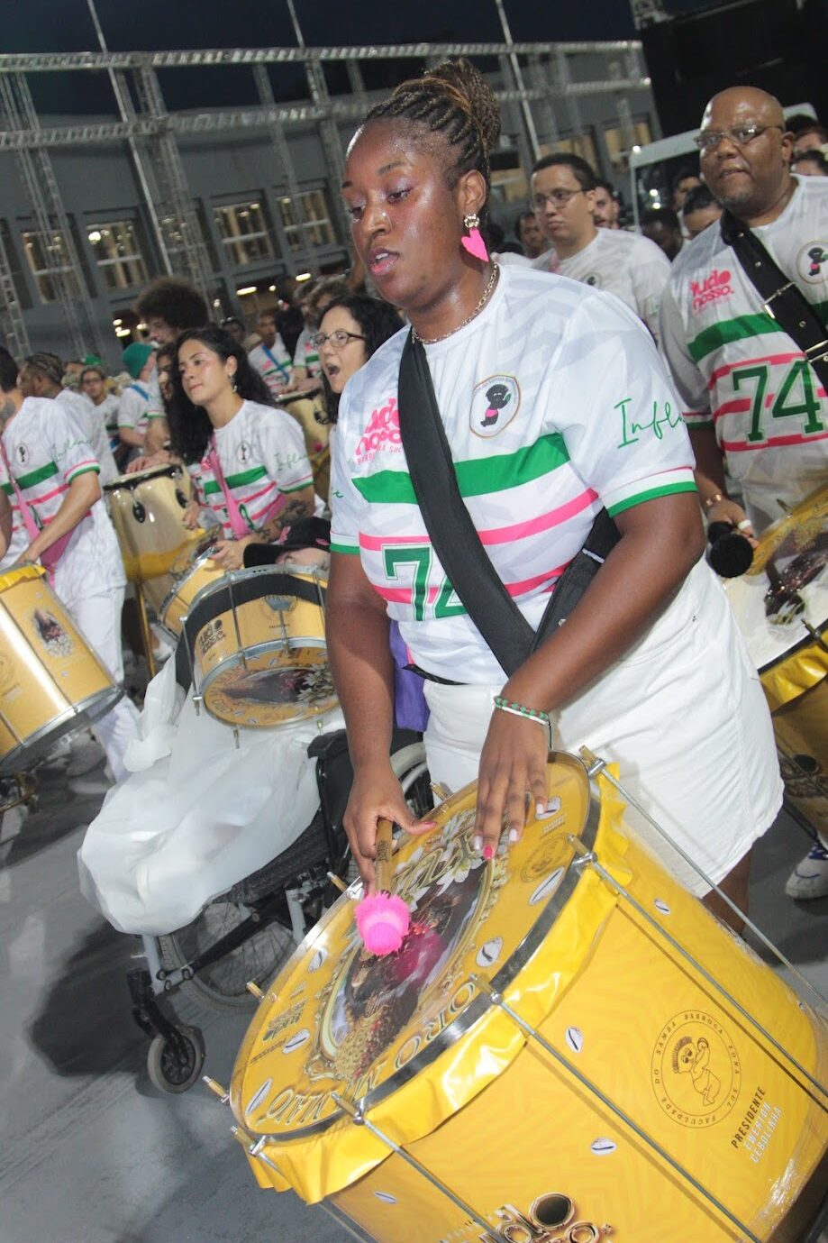 A Barroca Zona Sul levou sua comunidade em peso ao Sambódromo para o ensaio técnico do enredo “Oro Mi Maió – Oxum”, desenvolvido pelo carnavalesco Pedro Alexandre (Magoo). O amarelo e o dourado dominaram todos os setores da escola, reforçando a identidade visual e simbólica do tema.