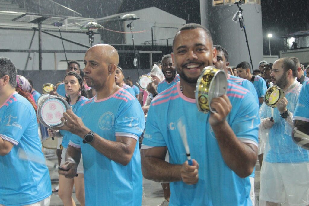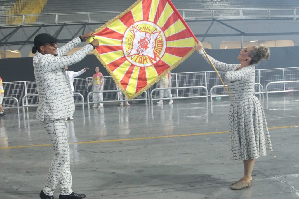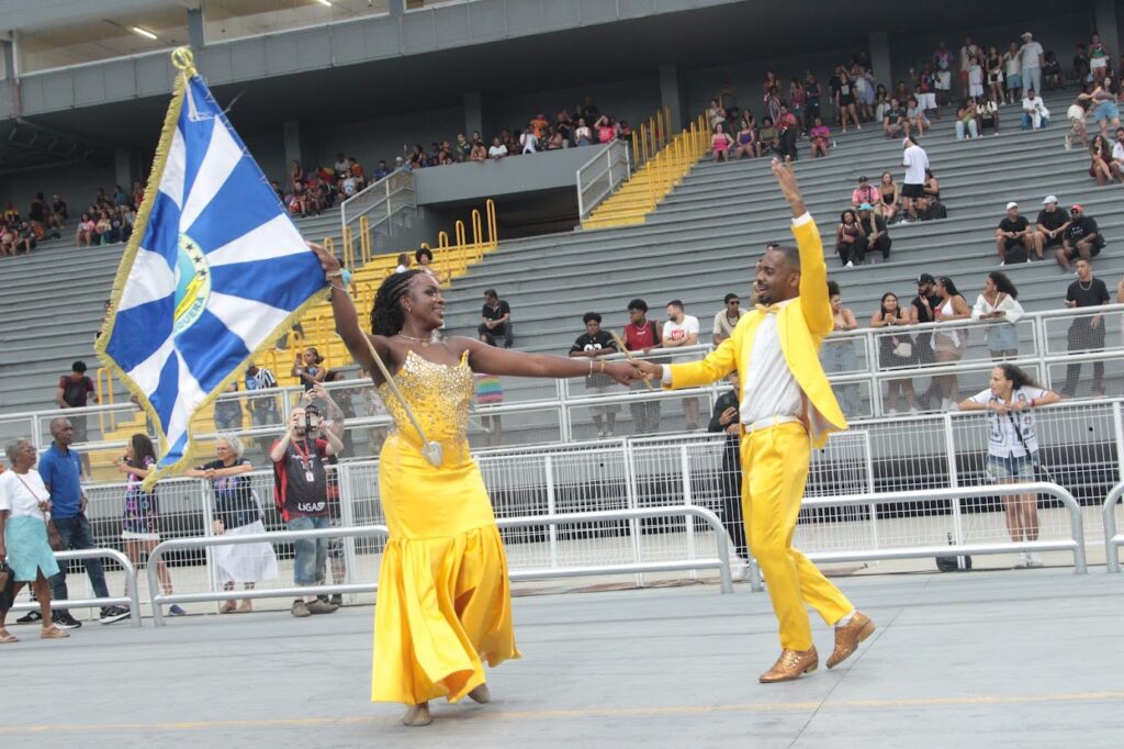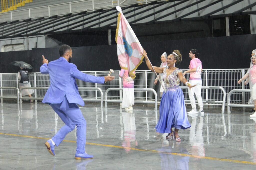 O casal de Mestre-Sala e Porta-Bandeira Leonardo Henrique e Mariana Vieira, enfrentou os ventos fortes que atingiram o sambódromo, executando sua apresentação com garra, segurança e entrosamento, mesmo diante das dificuldades climáticas.