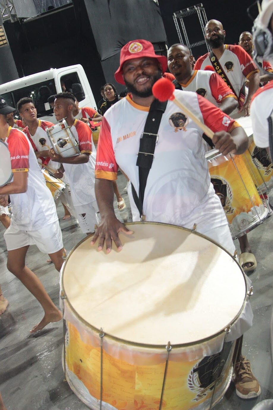 Outro destaque foi a marcação do abre-alas, realizada por três carretas, indicando a presença de uma alegoria de grandes proporções no desfile.
